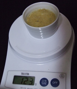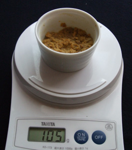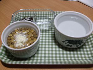 水(ぬるま湯)に浸したフード、うちはふやかしたあと少しつぶします。