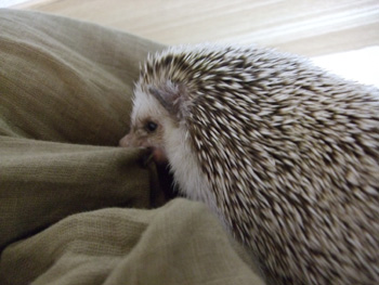 (これがアンティング。ハリネズミはかぎなれない臭いをかいだ時とか