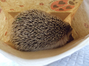 ケースから出た後はいつもこの紙袋の中に逃げ込むかのたん。