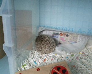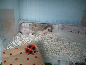 それから昼はケースの中、隅っこで丸まって寝てる。広くなってもいつものところがいいのか~