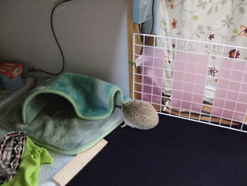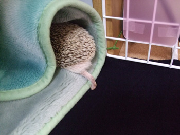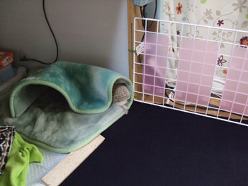 朝は毎度の警戒っぷり。でもあしについたうんちがかわいて剥がれて、毛布が散々なことになってしまったので