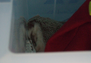 朝のご飯は3口くらい、今朝は袋から出てこようとしない