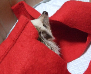 今日はケースにご飯を入れてるときに立ち膝みたいな姿勢になったんだけど、スカートの中が暗くて気になったのか突入してきて、後ろに垂れたスカートの内側を伝って登ってきて焦った。そこは危険だよ!踏んじゃったらどうするの…
