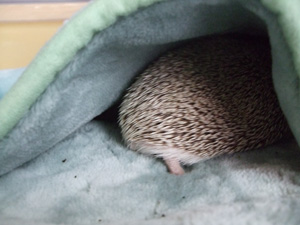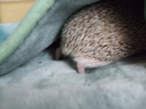 今朝は毛布から出るのを拒否しているかのたん、寒くなるからケージに戻っていただいた。