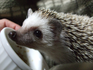 その後いつもの加湿器前でうろうろ、ご飯つぶしてたらこっちをじっと見てるので、おいしそうなニオイなの?ってお皿を口元に持ってったらその場で