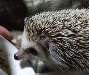 ピンクマウスを二つに切ったものをその場で食べていただいて、フードはにおいをかいだだけ
