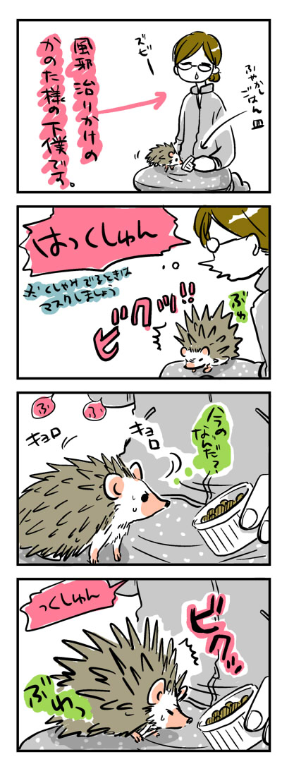 人間の風邪もハリにうつると教えてもらったので、しっかりマスク推奨です。