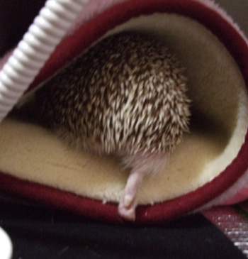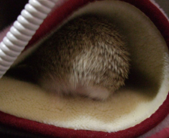 毛布を後ろ足で掘り蹴ろうとして足を滑らせたかのたん