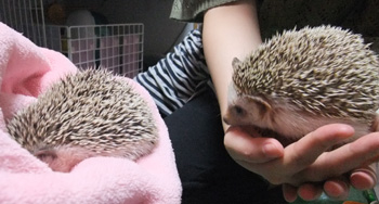はなちゃんは相変わらず20日にはホイール回し始めて、寝て、食べて、ホイール回して。 かのたんはマイペースです。 昨日友達が暗闇でかのたんを観察してたら、蛇の抜け皮と戯れて横回転してたそう。 かのたんはウェットフード、はなちゃんはウェットには口つけない。ドライオンリー。 この違いも不思議だなあ 友達に協力して貰って大きさ比較その2 はなちゃんチラッてしてる ちょっとくんくんしてるかのたん それ以上の興味はお互いない様子です ここからかのたんのターン!