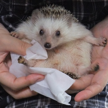 足とお腹の毛を拭くよー